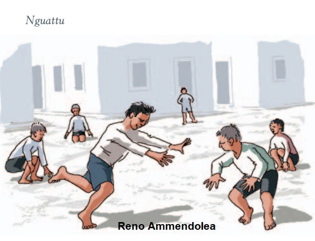 Gioco a numero aperto. Il sorteggiato dalla conta si dirigeva verso qualche partecipante con l’intenzione di agguantarlo fintanto che fosse in piedi. Infatti, appena si avvicinava, ognuno si accoccolava e tutti quelli che risultavano accoccolati o “nguattáti” erano immuni dalla cattura. Solo quando veniva sorpreso uno in piedi avveniva l’avvicendamento nel gioco. In senso di sfida verso il sorteggiato gli veniva recitata la cantilena: “T’a mangiásti a pasta c’a siccia, era bella e sapuríta?”. Il gioco era tipico dell’area di Ferruzzano